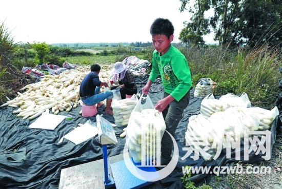 萝卜迎来大丰收,滞销的局面却让菜农高兴不起来。这么一大袋有60斤,只卖5元钱。 本报讯 (记者 许雅玲 陈晓东 实习生林书修 文/图) 随着《舌尖上的中国》第二季第一集《脚步》的热播,石狮蚶江大厦村的沙土萝卜着实“火”了一把。荧屏上,沙土萝卜入口润嫩,毫无纤维感,让人垂涎三尺。然而,昨日,记者来到大厦村却了解到,当地菜农辛勤劳作,将萝卜种得又大又白,却8分钱一斤的低价都卖不出去。沙土萝卜在当地少人问津,此次在全国却颇受热捧,可谓是“墙内开花墙外香”,这让菜农感到无奈。 萝卜产量多 本地需求少 “三年了,整整滞销三年了。”来到一片沙土地边,当地菜农程水平叹了口气。他告诉记者,自己种了700多亩萝卜,亩产近万斤,“有的种在大厦村,有的种在大厦村附近的村子。每亩投入1000多元,现在一亩卖500元都没人要。”他介绍,三年前,沙土萝卜开始滞销,今年最严重。本地市场已经供大于求,一大袋60斤只卖5元,除去运输费和人工费用,大家连种子钱都赚不回来。 之前有天津、北京等地老板打电话联系过他,但是北方屡下大雪,造成交通不畅。“而现在蔬菜车也不允许超载,外地老板的运输成本增加,别人也不愿意过来收购。”程水平感到很无奈。 曾出口海外 越卖越便宜 大厦村村支部书记程元信告诉记者,萝卜是大厦村沙土地的特产,它们虽貌不惊人,但三年前几乎都出口海外。“以日本为主,只是后来因为国际形势,就没有再销往日本了。 “当时一斤卖两三毛钱,后来越卖越便宜。”程水平指着萝卜说,一斤要卖一毛六才能保本,现在卖8分钱都还卖不出去。我算了算,三年前一亩能赚3000元,现在每年都要亏几十万元。 |