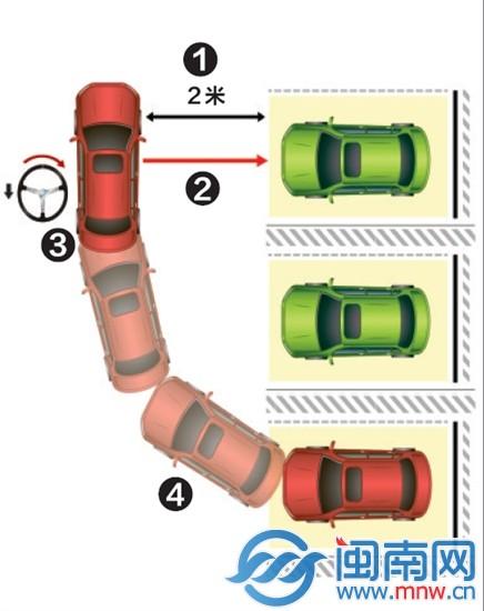 “非字形”车位:懒人倒车法 No.2“非字形”车位:懒人倒车法 “非字形”车位,是泉州地下停车场运用最多的车位类型。对于这类车位,有一种懒人倒车法,比较适合方位感不强,需要各种“指示杆”来指明方位的新车主。用这种方法,找准点后一般都能比较精准入位。 第一步:将车和车位平行,横向距离保持在两米左右(仅针对三厢轿车)。 第二步:调整车辆,让驾驶员视线与隔壁第二个车位的车辆中心线在同一平行线(车辆停靠的位置,会因车辆大小有所区别,在实际倒车过程中需要根据车辆做适当调节)。 第三步:往右打满方向,然后倒车入位。 第四步:当车与车位平行时回正方向,然后继续往后倒入位。 |