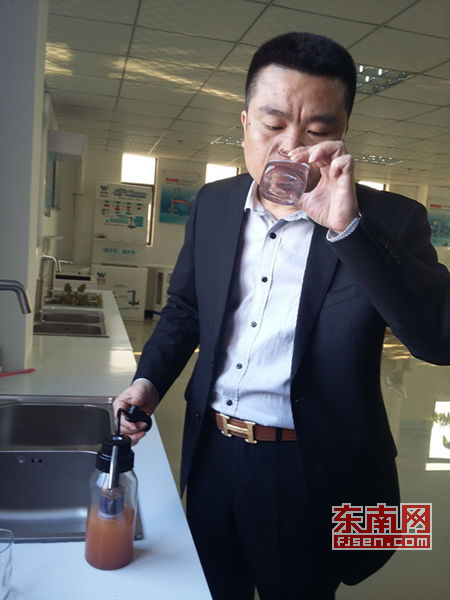 ![]() 汤艺文演示净水器功能,并喝下净化出来的水 从消费者的角度出发去研发产品 对于企业升级的未来之路,汤艺文认为除了精于产品核心科研,还要从消费者的角度出发去研发产品,让产品更符合消费者的需求。在该公司的展品陈列室内,记者看到最新一款的净水设备。该新款的家用净水器将早期普通净水器的庞大净水处理设备缩减到一个仅10厘米高、直径约3厘米的小圆柱体净化芯,并直接依附在水龙头上,节省了很大的空间。 随后,记者在证书陈列架子上也找到了该款产品的相关证书,据初步统计,截至目前该净化水龙头已获得50多项的专利,其中实用性专利30多项。汤总介绍,该产品是公司经过5年时间研制而成,先后通过三个大阶段的改进,而这些改进的依据则是来自于一次次的消费者体验反馈,公司对这些体验户也进行使用情况跟踪,并根据消费者使用后的建议进行改进。目前,该产品首批2000个已经下线,计划2015年开始扩大该产品生产量,以满足更多消费者的需求。 “精于芯,简于形”,这便是泉州万利得节能科技有限公司的宗旨。在多年的经验中,该公司目前已取得国家高新技术企业资格,福建省科技型企业、福建省创新型试点企业、泉州知识产权试点企业、中国2013年净水行业十大创新品牌等多项荣誉,并获得国家技术创新基金立项支持。再次谈起企业未来的发展,汤总肯定地表示:“未来是否能在市场上占有一席之地,关键在于产品的科技含量,而科研,尤其是贴近于老百姓生活需求的科研,将成为公司产品的研发方向。”