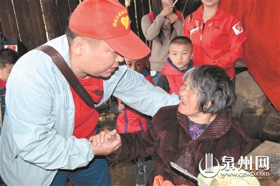 坚持公益10年 访遍大小村镇 德化孙炳章获评“第四届泉州市道德模范”  孙炳章(左)带领志愿者慰问留守老人 核心提示 德化人孙炳章今年38岁,10年前,他只是一名普通的中学老师,一次偶然的机会,他接触到公益事业,从此一发不可收拾。10年来,他在教书之余,和当地憨鼠爱心小分队的志愿者走遍德化大小村镇,组织近百场爱心活动,为帮扶对象累计筹得款物近500万元,个人累计服务时间达5000小时以上。助人为乐的他曾获得泉州市优秀青年志愿者(金奖)、福建省雷锋优秀志愿者等荣誉。近日,他又获评“第四届泉州市道德模范(助人为乐类)”称号。 □记者 黄枫 黄璧娇 实习生 郑梦茹 彭坚林 文/图 网上结缘好友 成立志愿队伍 2004年,孙炳章在闲暇之余经常浏览德化当地论坛,结交了一些志同道合的网友。聚会时他们常采取AA制,几次活动下来有了不少余款。这些钱要拿来做什么呢?一名网友提议去帮助困难老人,做些有意义的事,得到了一致赞同。在孙炳章等人的带领和策划下,十几名网友组成了德化憨鼠爱心小分队。 “当时交通不方便,我们骑着摩托车到附近村镇踩点,先摸底情况,再根据实际需要予以救助。”孙炳章回忆,有一次在德化上涌镇,他们发现有位孤寡老人家里没通电,生活极不方便。他把情况反映给供电所,供电所便专门为老人架设了一条电线,爱心小分队垫付了电费。老人非常感动,握着志愿者的手连连道谢。 除了走访困难户,孙炳章还多次组织义务理发队、爱心义诊队、爱心摄影队深入养老院、边远山村,看望留守老人,举办“百岁宴”等,极大温暖了当地老人的心。 |