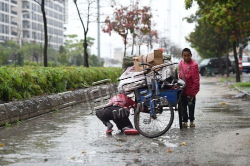 母子智力残缺沿街捡破烂养活7口人 窘境引发网友关注 母子沿街捡破烂 养活一家7口 一条微博,引发网友关注;一家窘境,让人很是心疼 三轮车骑到半路,掉了链子,雨中,母亲趴下修理 东南网3月28日讯(海峡都市报记者 张凯航 谢向明 文/图)细雨中,南安经济开发区茂盛路街头,一个身材消瘦的少年,骑着三轮自行车,载着母亲,沿街翻搜垃圾桶,找寻废品和食物。 本月25日下午,这震撼一幕,被路边快餐店主偶然瞥见,并将之发上微博,随即引来大量网友关注,大家都想不到,在我们身边的某个角落,竟然还会有这么一个家庭,仍以此维生。 前日上午,海都记者来到南安市经济开发区茂盛路,在该网友经营的快餐店中,偶遇前来避雨的母子俩。海都记者随他们回家,看见的一幕幕让人很是心疼。原来,母子俩都是智力缺陷人士,除母子外,家里还有5口人,母子用捡来的废品和剩菜剩饭,维持着这个家庭最基本的生活。 走访: 孩子载母亲 沿街捡废品 “这对母子每天都要从我店里经过,母亲智力缺陷,儿子就每天踩着三轮车载着母亲到处捡东西,看着很是心疼”。本月25日下午,网友“陪我去看海972”将所见一幕,配图发上微博。几个小时内,就有300多名网友转发,甚至不少网友还表示愿意捐助。 海都记者联系到该网友,她是在茂盛路上经营快餐店的杨女士。杨女士说,附近的好心厝边偶尔拿来食物送给他们,两人还会用闽南语说“谢谢”,但是想要再聊,两人半晌都答不出个所以然。 杨女士说,25日下午,小男孩探头到1米左右高的垃圾桶捡东西,不料一头栽进去,扑腾了一下,自己又爬了出来。就是这一幕,让杨女士几乎落泪。 下着细雨的茂盛路街头,一对母子坐在杨女士快餐店的椅子上。这是前日上午,海都记者所遇见的场景。母亲头发凌乱,身穿羽绒服,脚上是棉袜搭配拖鞋,小男孩满脸污渍,不合身的外套里,只有单薄的T恤。 杨女士说,一早开了店门,就见母子俩躲在店门口,便招呼两人进店避雨。店内的员工拿来香蕉,而附近店家,也攒了些废弃纸皮拿来相送。 “你叫什么名字,哪里人呢?”海都记者试着问,“我叫小梅,家在那里”,女子伸手指着门外,至于地名,说不上来。 |