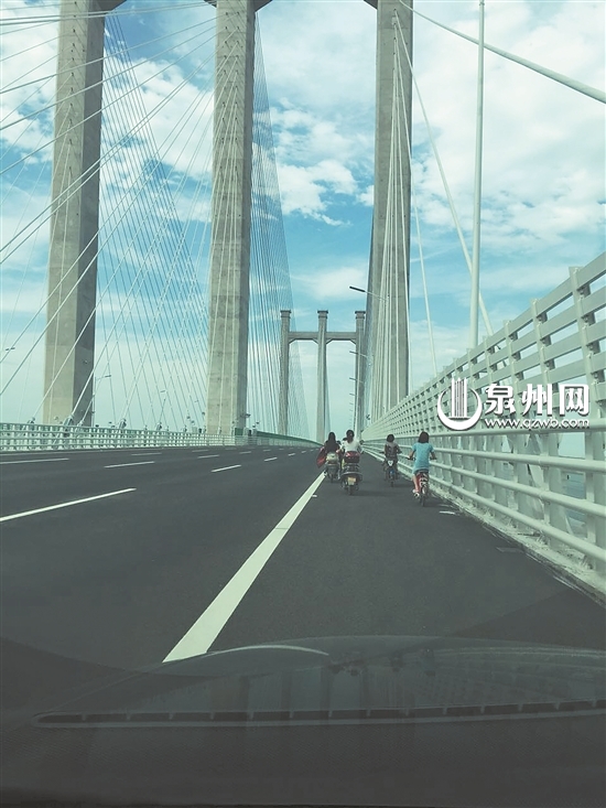 - 2015-05-15四女子骑电动车上泉州湾大桥观光 被高速交警劝离