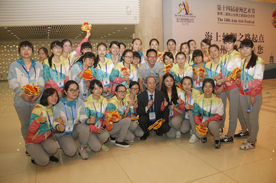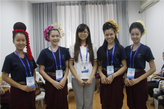 青年翻译袁晓瑶与泰国艺术团成员合影