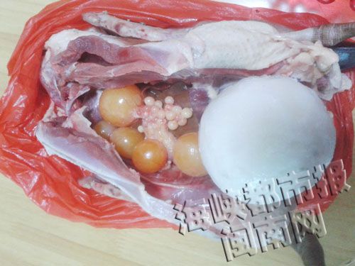 ![]() 这个白色肉球有8两重 东南网3月25日讯(海峡都市报闽南版记者 黄晓蓉 文/图)养了3年的草鸭不生蛋,昨日中午一宰,里面竟然有颗8两重的白色肉球,这可把惠安的徐阿姨吓一跳,这草鸭的肉还能不能吃? 3年前,徐阿姨抓了3只小黑鸭家养,其中两只前年就下蛋,唯有这只鸭子,肚子越养越大,却一直不下蛋。昨日中午,徐阿姨准备把它宰了吃,抓鸭时,就发现鸭子的肚子摸起来很硬,哪想清理内脏时,竟发现一个白色大肉球、5个蛋黄和一大串还没发育完成的鸭蛋。 白色肉球一称,竟然有8两重,厝边们都说没见过。徐阿姨的儿子把肉球剖开,里面是黄色物质。 泉州市农业局动物疫控中心的工作人员看了鸭子和肉球照片后,称这并不是“鸭宝”或肉瘤,白色物质是鸭的脂肪,里面黄色物质是蛋黄,“家禽肚子里长东西是万分之一的概率”,鸭子的卵巢很健康,所以不是病变,鸭肉可食用。而鸭子之所以长肉球,不外乎两个原因,一是在鸭子产卵期间,可能受到惊吓,身体内分泌混乱,肉球是应激反应的产物。二是跟天气有关,去年12月以来,泉州天气普遍寒冷,鸭子抵抗力变差,可能是生病所致。 另外,也提醒广大读者,所谓的“鸡宝”、“鸭宝”没有价值,没必要花大价钱去鉴定。 |