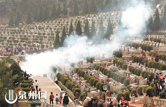 昨日,前往宏福园扫墓的市民众多。 核心提示 昨日是清明节小长假第一天,天气晴朗,许多市民携家带口前往中心市区的清源山、宏福园和皇迹山陵园扫墓。据统计,昨日两园一山共有6.6万多人祭扫,其中宏福园约4.8万人,皇迹山陵园约1.3万人,清源山约0.5万人。 记者了解到,祭扫高峰期一般为早上9点到下午4点,请市民尽量乘坐公共交通工具,错峰出行。一些不文明祭扫现象仍存在,请务必注意防火。 □本报记者 吴志明 王丽虹 林劲峰 文/图 祭扫迎来高峰期 两路段交通管制 昨日上午10点多,记者驱车前往皇迹山陵园,刚到中心市区刺桐路与东湖街交叉路口,就发现车流量比平时大了不少,红绿灯一般要等两次才能通过。但因为主要路口都有交警维持秩序,因此未出现拥堵状况。 11点多,记者下山时,只见路口的几名交警正在吃盒饭,另外几名交警在指挥交通。丰泽交警大队相关负责人告诉记者,清明节期间车流量大,每个路口都安排了十几个人维持秩序,中午是高峰期,他们都没办法回家吃饭,只好叫盒饭。 交警提醒市民,若这两天计划开车去皇迹山陵园扫墓,统一由国道324线进入皇迹山陵园,扫墓完再从刺桐北路的出口出来。 在清源山齐云路,几名交警对道路进行交通管制。据了解,为确保清源山景区道路交通安全有序畅通,4月2日至4日的上午8点至下午5点,清源山齐云路、北山路实施全封闭交通管制,禁止一切机动车辆通行。 相关负责人提醒,皇迹山陵园祭扫高峰期从下午2点持续到4点许,宏福园祭扫高峰是早上9点到11点、下午1点半到3点,清源山祭扫高峰期从上午9点到下午3点,建议市民避开。  不少市民选择用鲜花寄托哀思 一束鲜花寄哀思 文明祭扫更环保 上午10点多,记者在皇迹山陵园看到,不少市民手持鲜花前来祭拜先人。市民周女士及爱人轻装上阵,周女士双手各握着一束鲜花,两人一路爬上山。来到一座墓前,周女士将一束花放到墓碑前,然后祭拜。之后,两人又一路往另一侧走去,找到连着的三座墓,周女士将手上的花分别放到墓碑前,继续祭拜。 周女士说,此次祭拜的是她的姑丈和几名亲友,她和爱人已经连续十几年在清明节前来祭拜,每次都是带鲜花,一束鲜花足以表达她的哀思,鲜花祭扫更文明和环保。接下来两天,她和爱人还计划到清源山和南安诗山镇祭拜先人,也是带上鲜花。 45名学生志愿者 到陵园疏导交通 上午8点30分左右,华侨大学45名学生志愿者早早来到皇迹山陵园管理处开展志愿服务。他们分成4组,有的在山下帮忙疏导交通,有的在山上分发宣传单,宣传文明祭扫。 带队的黄炜豪告诉记者,清明节小长假3天都有45名学生志愿者到皇迹山陵园参加志愿活动,从早上持续到下午4点30分。志愿者周同学告诉记者,这是她第一次到陵园参加志愿活动,主要负责陵园交通疏导,虽然一直站着,但能让大家出行畅通无阻,感觉值得。  昨日,在皇迹山陵园内,不时可见燃放爆竹升腾的浓烟。 烟头点燃树枝 幸被迅速扑灭 昨日下午4点多,泉州交警支队丰泽大队北清分队民警在宏福园大门疏导交通时,突然发现大门附近的围墙外围出现火情,有人扫墓完抽烟,烟头掉在地上点燃一堆干枯树枝,引发火情。虽然干枯树枝附近没有可燃物,但比邻的位置停着两辆小轿车。交警迅速联系小车车主,通知其驶离,并联系宏福园管理处。管理处工作人员立即拿着灭火器赶到,并开来洒水车,经过十几分钟的努力,这处火情被控制。 泉州消防支队提醒,清明节期间,春风起,空气燥,以焚香、烧纸为主要形式的祭祀、扫墓活动稍有不慎极易引发火灾。市民烧纸、焚香、燃放鞭炮应到指定地点,或放在铁桶内燃烧,远离可燃物;严禁在山林、杂草密集地段使用明火、焚烧纸钱和燃放烟花爆竹,离开前还应将燃灰清理干净,确认火源完全熄灭。 不文明现象 仍不时出现 采访中,记者发现个别市民存在不文明祭扫现象。有些市民直接在墓地上焚烧纸钱,使得纸灰四散,附近乌烟瘴气。鞭炮声也不时可以听到,在皇迹山陵园,有些市民甚至还在墓地上燃放烟花。记者观察发现,在燃放鞭炮和烧纸钱的地方,地面上都留下一大片碎红纸屑和灰屑。在宏福园,一些市民在祭扫后,直接将塑料袋等垃圾丢在地上,导致园区堆了不少垃圾。 12点多,记者来到宏福园,从宏福路路口往园区方向望去,路上排着长长的车队,行进非常缓慢,一些市民只好下车步行前往园区。现场交警介绍,车流的激增与部分市民随意停车导致交通滞留、车辆在途中随意掉头添乱有关。而在前往皇迹山陵园的路上,由于有人将车停在路边,使得原本就不宽敞的道路显得更加狭窄,车辆只能缓慢通行。 |