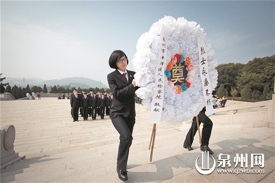 部队官兵向余寿章烈士雕像敬礼 (华伟 摄) 缅怀英烈寄哀思 矢志强军抒壮志 驻泉某部队组织官兵祭奠革命烈士 本报讯 (记者游怡冰 通讯员谢孝明 代文新)日前,驻泉某部队组织官兵到驻地革命烈士纪念馆开展祭奠英烈活动,缅怀先烈丰功伟绩,传承烈士不朽精神。 纪念碑前,宁静肃穆,气氛庄重。飞行员们整齐列队,飞行员代表迈着庄重的步伐,向烈士纪念碑敬献花圈,全体人员脱帽肃立,怀着深刻悼念之情,向烈士默哀致敬。他们举起右手,面对鲜红的军旗庄严宣誓,表达对革命先烈的崇高敬意。随后,他们走进革命历史纪念馆,一幅幅珍贵的历史照片映入眼帘,解说员向飞行员们讲述了一个个撼人心魄的战斗故事,重述先辈们的英勇事迹,再一次激发了大家对革命先烈的崇敬之情。 当天祭奠活动结束后,部队各个党支部还专门召开党小组会,针对部队即将展开外训任务、强化指挥技能训练,引导官兵以实际行动表达对革命先烈的崇高敬意。 余寿章烈士雕像揭幕 本报讯 (记者陈林森 通讯员谢瑞镔 华伟)1日上午,余寿章烈士雕像在南安连坑部队正式揭幕。 1995年12月11日,余寿章带领驻闽南某综合仓库分库官兵参加仓库组织的队列会操。结束后,他带领部队沿公路返回营区。由于驾驶员疲劳驾驶,一辆满载15吨石头的大卡车从后方直接冲向队伍。排头的余寿章立即意识到危险,千钧一发之际,全力将身边的战友推开。战友得救,而余寿章却因为身负重伤倒在血泊之中,后经抢救无效,英勇牺牲,年仅31岁。1996年8月23日,余寿章被原南京军区批准为革命烈士,1997年2月5日被原南京军区追记一等功。 揭幕仪式上,仓库官兵纷纷表示,将学习余寿章烈士英雄事迹,弘扬烈士精神,做好“接班人”,跑好手中的“接力棒”,用自身的实际行动传承先烈意志,坚决践行强军目标。  日前,丰泽区检察院组织青年干警到泉州市烈士陵园开展“缅怀革命先烈、做忠诚干净担当检察干警”活动,以敬献花篮、默哀致敬、重温入党誓词、参观纪念馆等方式,悼念革命先烈,缅怀他们的丰功伟绩,表达无限哀思和敬仰之情。 (吴志明 王荣灿 摄)  清明节前夕,晋江市希信中心小学十多名学生前往青阳乡贤祠,参拜先贤前辈,听老师介绍乡贤们外出为官廉洁奉公、勤政为民,在家为民则热心公益、和睦乡里的事迹,表达对乡贤的敬仰之情。图为老师向学生介绍乡贤事迹。 (许雅玲 彭志翔 黄旭良 摄) |