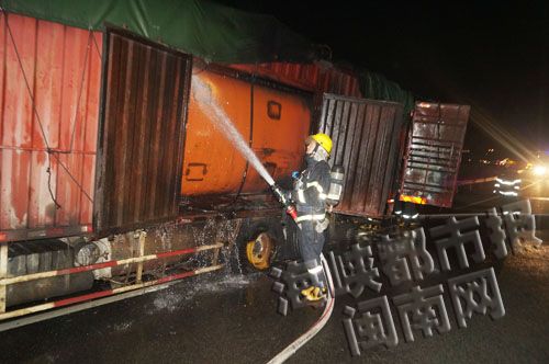 ![]() 火势控制后,消防发现车厢里藏着油罐 相关阅读>>>油罐车低价卖油 东南网4月14日讯(海峡都市报记者 张凯航 林莉莉 黄晓蓉 通讯员 吴文霞 熊冬冬 文/图)夜里,高速路上,一辆厢式货车后轮突然起火,消防官兵在灭火时意外发现,车厢里竟暗藏着一个大油罐,好在大火被及时扑灭,罐内柴油没有被引燃,本月11日晚,这惊险的一幕发生在莆永高速永春岵山服务区附近路段。知情人士透露,事发时该油罐装有约20吨油品。 昨日,海都记者从泉州高速交警获悉,因罐内柴油来历不明,存在走私的嫌疑,案件已移交泉州边防进一步调查。而泉州边防也表示,是否涉走私尚无法确定,仍需进一步调查。 此前,永春蓬壶、达埔,频现油罐车路边低价变卖柴油,海都记者深入调查,多方人士直指其走私嫌疑大。永春县商务局透露,已约谈曾被发现在路边卖油的4名油罐车司机。 报警说车上有柴油 灭火后发现油罐 11日晚8点26分左右,莆永高速往龙岩方向永春县岵山服务区附近路段,一辆车牌为“闽F91896”的厢式货车车轮失火。驾驶员发现火情后停车报警,泉州高速交警支队六大队筹备组交警及永春消防大队消防队员,接到报警后赶往现场救援。 “报警时就说,车上有柴油,我们还以为是油罐车”,高速交警有关人士透露,到了现场,却发现是一辆红色货车停靠在应急车道,这时再联系报警人,电话已经打不通。起火的位置位于货车左侧后轮,几分钟后,轮胎位置的火势就被扑灭,消防官兵继续对车轮及货厢浇水冷却。不料,车厢内突然又蹿出火苗,还传出一股柴油燃烧的味道。 消防官兵一边用水冷却车轮,一边架拉梯架到货厢上,用泡沫枪从货厢顶向车厢内进行灭火。十几分钟后,火势终于被控制下来。消防官兵打开货车厢,却发现原来里面是一个大油罐。消防官兵赶紧再对罐体浇水冷却,经查,罐内柴油没有被引燃,刚才被引燃的,是车厢内输油管的残留柴油。 |