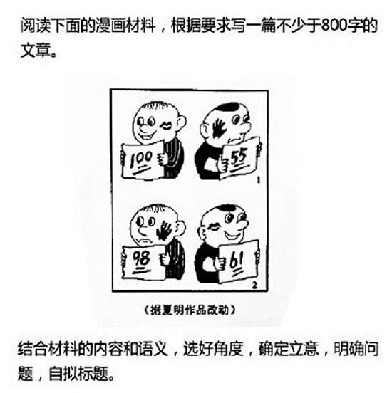 核心提示 今年福建省回归使用全国卷,高考作文题一出炉,就成为热点话题。作文命题的特点如何?该从什么角度立意?反映了怎样的考查方向?本报特地邀请了一线名师,就此次高考作文命题进行分析。老师们仁者见仁、智者见智,提出了自己的观点。 □本报记者 曾聪虹 2016全国I卷 高考作文题 阅读漫画材料,根据要求写一篇不少于800字的文章。(60分) 要求:结合材料的内容和寓意,选好角度,确定立意,明确文体,自拟标题,不要套作,不得抄袭。 解读一 “读图”难度增加 联系社会生活 ■倪宁馥(泉州一中高级教师,泉州市语文学科骨干教师) 漫画作文不是高考作文常考的类型。作为材料作文的一类,审读材料(即“画面”)并据此立意,是关键的一步。 本幅漫画的内容清晰,容易把握:甲同学第一次考了100分得到父母的亲吻,第二次考了98分则挨了耳光;乙同学第一次考了55分被扇了嘴巴,第二次考了61分则得到亲吻。这样的画面,并不鲜见,符合考生特别是家长的生活实际,反映了当下家庭、学校乃至社会如何面对孩子学习和成长的问题。 诚然,重视分数一定程度上有利于激发学生的学习热情,但如此“唯分数论”给孩子带来的身心伤害也是显而易见的。在应试教育“高烧不退”的大背景下,诸多家长迷失家庭教育的主体方向,变相的只关心孩子的成绩排名、考试分数等,由此引发一系列的家庭、社会矛盾和问题。如何理性看待分数、进退,如何避免陷入“功利主义”误区,如何促使教育真正回归本原,都是此次作文值得讨论的问题,也是相对容易把握的方向。其他如“树立正确的成败观”、“建立合理的奖惩制”等,亦是较为准确的立意选项。而具体到谋篇布局,就多数同学选择的议论文体而言,可以先概述画面,再揭示寓意、明确主旨,然后联系社会生活,展开合乎情理的论述。 其实就本届考生而言,虽然今年的考题有些出乎意料,但其实并不陌生。今年的题目,相对以往常见的“文字”材料作文,增加了“读图”的难度;相对重点准备的“任务驱动型作文”,则因所谓“任务”的消失,降低了构思的难度。考生若能保持平稳、积极的心态,调用之前(尤其高一高二)训练的积累,相信不难应对。 |
