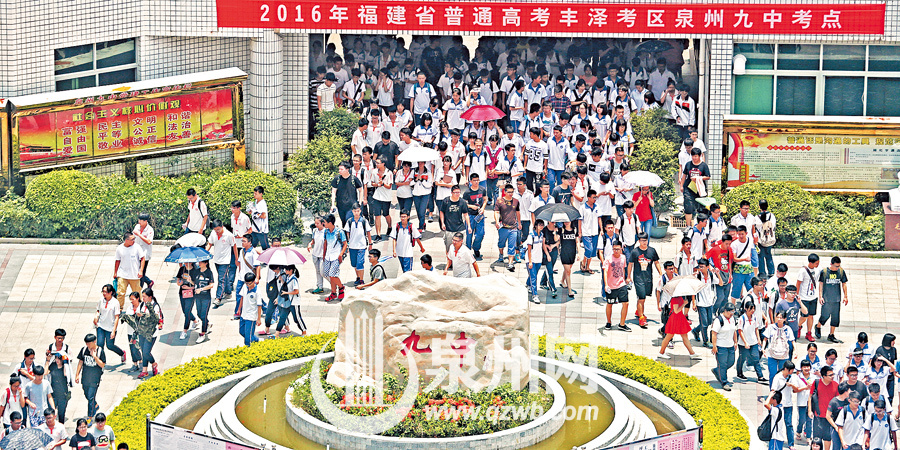 2016年高考拉开帷幕,泉州市考生分别在45个考点、1165个考场迎考。 (张九强 摄) 本报讯(记者 陈玉珍 曾聪虹 赖劲松)昨日是高考首日,高考语文科、数学科考试顺利结束。记者从市招考办了解到,昨日考试秩序良好,没有出现大面积的违纪舞弊事件,没有接到举报电话。 据了解,福建省17.5万名考生昨日在全省各地参加高考,全省共设6000多个考场。泉州市33460名考生报名参加普通高考,其中昨日374人缺考,启用备用考场2个。违纪2人(一考生将试卷带出考场,一考生携带手表进入考场)。无出现重大突发、偶发事件,无出现考试工作事故。 为了防范高考作弊,福建省各考点将有金属探测仪、二代身份证手持核验仪、无线电检测车全城检测电波。省教育考试院特别提醒,考试期间福建省所有考点、考场全程开启视频监控和网上巡查系统。考试结束后,省教育考试院将组织专门人员对全省所有高考考场录像进行集中回放审看。考试期间,省教育考试院专门开通考风考纪监督举报电话受理考生举报,举报电话:0591-86215628。 市招考办负责人强调,希望广大考生诚信应考,切勿违纪舞弊,并自觉服从考试工作人员管理,不得以任何理由妨碍考试工作人员履行职责,不得扰乱考场及其他考试工作场所的秩序。 |