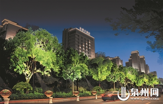 车行道夜景效果图 (市政工程管理处 供图) 标志性建筑全彩展示泉州元素 目前,刺桐路机动车道照明需求基本满足,个别路段照明被树木遮住,非机动车道许多路段照明被树木遮挡,中间景观带照明缺失。因此,在道路绿化景观方面,将结合原有石雕、草雕、花钵,用接近显色性较高的夜景灯进行点亮,避免溢出光,不会对行车产生炫光。 道路两侧的建筑物夜景提升,考虑住宅建筑以人居舒适为主,拒绝光污染,不影响市民正常生活等因素。集中在商业建筑和公共建筑上进行夜景提升,采用多种LED投光灯具、线型灯、投光灯,辅以点光源进行楼体立面照明,形成光绘图案。 同时,在部分重要节点的独立大楼、标志性建筑上进行提升,比如泉州晚报大厦、湖美大酒店、悦华酒店等,着重体现泉州大气风范。其中,泉州晚报大厦作为泉州一个重要的标志门户,主立面将采用LED全彩灯条,通过软件控制成为媒体屏幕展示刺海浪、刺桐花等海丝文化或泉州城市印象。 |