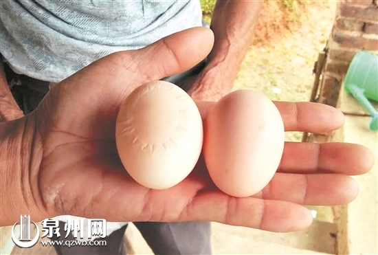 “彗星蛋”(左边)大小颜色与正常蛋差不多 本报讯 (记者陈明华 通讯员许华森 连江水 文/图)近日,德化县汤头乡福山村村民赖诗坪家的老母鸡产下一枚罕见的“彗星蛋”,蛋的一面有许多放射状的线条围成一圈,凹凸有致。 赖诗坪的侄孙赖诗录说,这枚“怪蛋”是几天前一只养了两年多的母鸡下的,大小颜色与平常的鸡蛋差不多。此事一传开,引来许多好奇的村民前来观看,大家都称从未见过。 对此,德化县农业局工作人员介绍,这是一种不常见的“畸形蛋”,可能是母鸡缺钙或其他微量元素引起的,也有可能是下蛋时软蛋壳还未完全钙化时受到挤压而成。此外,母鸡生殖系统发生炎症,或者母鸡在下蛋时受外界刺激,发生应急作用,也可能导致这种情况。 |
