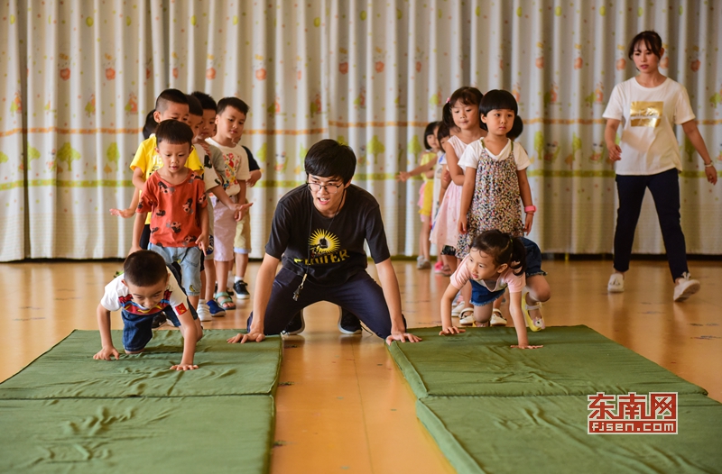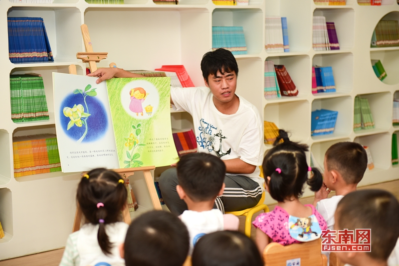 庆祝第34个教师节系列报道二: 幼儿园男教师:为学前教育注入“阳刚之气” 孩子们都喜欢这名新来的男老师 东南网9月9日讯(本网记者 谢玉妹 见习记者 林婕)新学期伊始,泉州幼儿师范高等专科学校附属东海湾实验幼儿园迎来了两名“特殊”的幼师——徐闽东和黄源凯。他们是该幼儿园首批男幼师。 说起幼儿教师,大多数人脑海中浮现的是会唱歌、跳舞、画画、做游戏、充满活力的女幼师。然而,以女幼师为主的的学前教育,近年来陆续迎来了不少男幼师,为幼儿教学融入一份“阳刚之气”。 相关阅读:兼具爱心与职业素养 特教老师这样上课 男幼师徐闽东正在引导孩子们做游戏 男幼师为幼儿园注入“阳刚之气” 在泉州幼高专附属东海湾实验幼儿园的多功能活动室内,男幼师徐闽东正在和孩子们玩“抓人”游戏。在徐闽东的引导下,孩子们奔跑着、笑着,欢快的笑声回荡在整个教室,他们都喜欢这名新来的男老师。相对于女幼师,徐闽东拥有更好的体力和更洪亮的声音,在一帮吵闹的孩子中,像是一个“孩子王”,能更好地“发号施令”。 “我们幼儿园首批2名男教师都毕业于泉州幼高专,大三就开始在幼儿园顶岗实习了,工作态度很不错,具备一个幼师应有的基本素养。”该幼儿园园长李志英告诉东南网记者,两名新入职的男幼师和其他幼师承担一样的日常教学活动,包括健康、科学、语言、艺术、社会等五大领域。“幼儿园的工作对男教师还是有点挑战的,特别是对孩子的生活照看这一块。”李志英说,即便如此,他们还是很快融入幼儿园的教学团队中,并获得孩子们的喜爱。 黄源凯和徐闽东一样,都来自于泉州幼高专首批学前教育专业男生班。首批46人的男生班今年毕业了,同学们大多从事学前教育的相关工作。能进入公立幼儿园,做自己喜欢做的事,黄源凯对这份工作十分满意。“小孩子都很可爱,我很喜欢他们,每天再累,看到孩子们的笑容,就觉得很开心。”黄源凯对学前教育始终保持着热忱,他认为这是一份非常有前景的职业,未来一定会坚持做下去。 黄源凯绘声绘色的教学方式不输给女幼师 男生看好学前教育前景选择当幼师 选择学前教育的原因有很多种,但是接触后,所有人的目标都只有一个:学好本领,教好孩子。来自厦门的陈拓域是泉州幼高专学前教育专业的大二学生,也是这个47人男生班的班长。 陈拓域的奶奶有五个子女,全部都是教师,每年的教师节是他们家最盛大的节日。高考后,在父亲的建议下,陈拓域选择了学前教育专业。“虽然都是老师,但我父亲是小学老师,而我报考的却是幼师,这就很不一样了。”陈拓域告诉东南网记者,报考学前教育专业虽然得到了家里人的支持,但是村里却仍有人不看好,说些嘲笑的话。就这样,陈拓域在支持与不解中踏入泉州幼高专。 “入学后发现,除了音乐、美术、舞蹈,还要学习学前教育的科研方法。”陈拓域坦言,学前教育和他之前所想的很不一样,接触后收获了很多,尤其是在担任班长职务后,更增加了自己的视野与责任心。未来,陈拓域希望能做好自己,顺利毕业,在学前教育工作领域取得一定成绩。 “幼儿园的孩子太小,经常磕磕碰碰的,不确定因素很多,所以我当时想的是当小学老师。”与陈拓域同班的周尔东也是来自厦门的教师家庭。周尔东的祖父母和许多亲戚都是老师,但选择学前教育专业却是他自己在综合各种考量后所做的决定。周尔东认为,学前教育行业的前景不错,近年来,对男教师的需求明显增加,且待遇不错。更重要的是,周尔东喜欢孩子,喜欢玩具,能带孩子们一起学习、玩耍是他选择这个专业的最大原因。 “虽然我以前学过钢琴,但是我们专业的学习,除了音乐还有舞蹈、画画、手工等,这些方面我没办法学得像女生那么快,需要花更多时间精力。”周尔东说,即便如此,他仍会努力学习好每项技能,以后让孩子们和家长认识到,男幼师也不差,甚至可以比女幼师做得更好。 男幼师黄源凯正在向孩子们读绘本,孩子们听得很入迷。 家长乐见男幼师教学 让孩子更阳光果敢 泉州市民郑先生的儿子已经上了一年幼儿园了,主要授课老师都是女幼师。“其实我觉得幼儿园可以引进几名男幼师,男幼师与女幼师在很多方面还是有区别的,让孩子从小感受到不同类型的老师的教学方式,对孩子成长有好处。”郑先生说。 曾女士的女儿今年刚结束3年的幼儿园生涯,开始读小学。曾女士认为,男幼师可以给孩子们上体育课、做游戏,让孩子们的性格更加阳光、果敢,但是在照料孩子等方面,还是女幼师更细心、也更方便些。男幼师和女幼师可以互相补充协调,效果更好。 张女士是一位母亲,也是一名女幼师,从事幼师工作12年了。“我之前没有跟男幼师共事,但我有一个好朋友就是男幼师,他在幼教领域也工作了五六年,他的教育模式我很赞赏。”张女士认为,男幼师的优势就是比较阳刚,而且教育模式相对于女幼师来说,比较好调整。 在一帮吵闹的孩子中,徐闽东像是一个“孩子王”。 男幼师比例不足1% 就业前景广阔发展可期 据了解,泉州幼高专于2015年开始招收首批学前教育专业男生班,至今已第四届了。 “男幼师的职业优势体现在,他们在幼儿活动特别是户外活动组织中,具有更强的感召力和吸引力,他们对于幼儿培养勇敢阳光的性格也是具有积极的作用。”泉州幼高专学前教育学院党总支书记王华宝