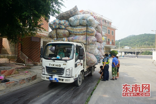 被查获的超高货车。郑婉玉 摄 东南网10月15日讯(通讯员 郑婉玉 本网记者 谢玉妹)不少货车司机认为,只要不超重就不算违法,殊不知货车载货超高、超长、超宽同样是不行的。日前,泉州水头治超站就查获一辆超高的载货货车。 当天,泉州水头治超站执法人员在执勤时,发现一辆白色车头的小货车,正慢悠悠地行驶在厦门往泉州方向的国道324线上,车上拉载的货物明显高出车身近一倍,旁边经过的车辆纷纷避而远之。 据当班执法人员介绍:“当时通过监控画面,我们根据经验判断该车存在较大的超限运输嫌疑,执法人员立即设卡示意司机靠边接受检查,在该车慢慢靠近时,看到货物叠得很高,仅用一根细绳子捆绑固定,摇摇欲坠,后车身的四周还各立着一根离地面约3人高的铁棍,令人看得胆战心惊。” 执法人员随即将该车引导进站并进行现场检查,经勘验该车的车货实际总高度为4.3米,超过规定高度0.3米,且该车车主兼驾驶员李某现场无法提供《超限运输车辆通行证》或其他有效证明,属于几何尺寸超限运输车辆。据李某介绍,此趟车上运载的袋装货物为自己四处收购的空饮料瓶等废品,从厦门马巷拟运送到水头某废品回收站,“这些废品不值多少钱,本想多拉点,可以少花一趟的油钱,刚好趁今天周末,也快中午12点了,以为会松一点,没想到……”李某后悔地说。 执法人员当场对李某心存侥幸、无视道路交通安全的行为进行严肃教育,并责令其完成对车上超高货物的分卸载工作。在执法人员耐心对其讲解超限运输的危害后,他表示以后一定合法运输、文明驾驶,支持路政工作。 据了解,当出现车货总高度从地面算起超过4米或总宽度超过2.55米或总长度超过18.1米的情形时,受重心和惯性影响,车辆自身的安全系数将大打折扣,同时极易给路面交通安全带来严重隐患,影响公路行车安全。水头治超站提醒广大司机朋友,养成文明运输的好习惯。 |