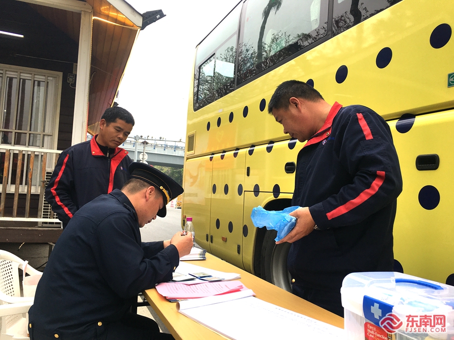 执法人员对车辆驾驶人员的相关证件进行检查登记。东南网记者 傅心玫 摄