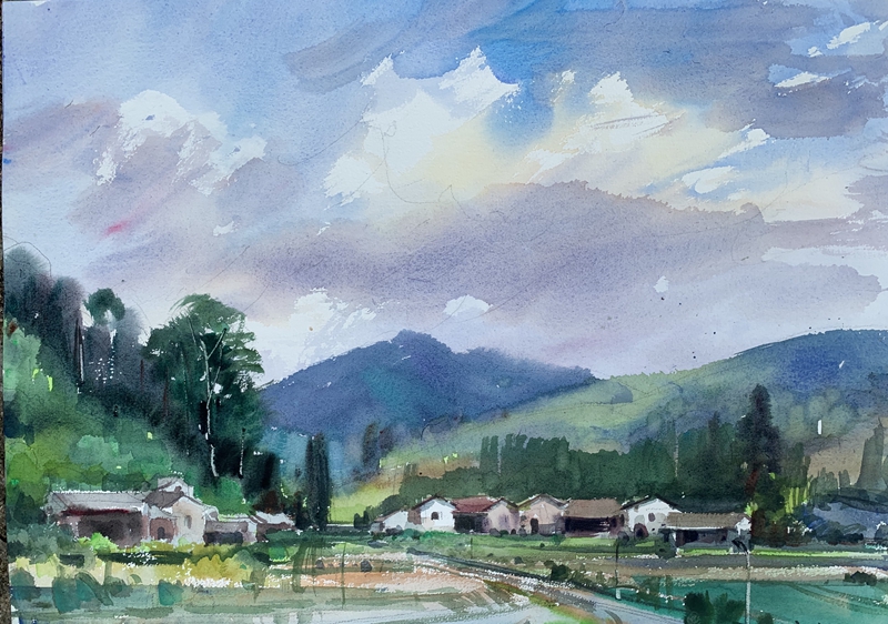 采风组写生作品水彩画《山夏之春》。泉州市文联 供图