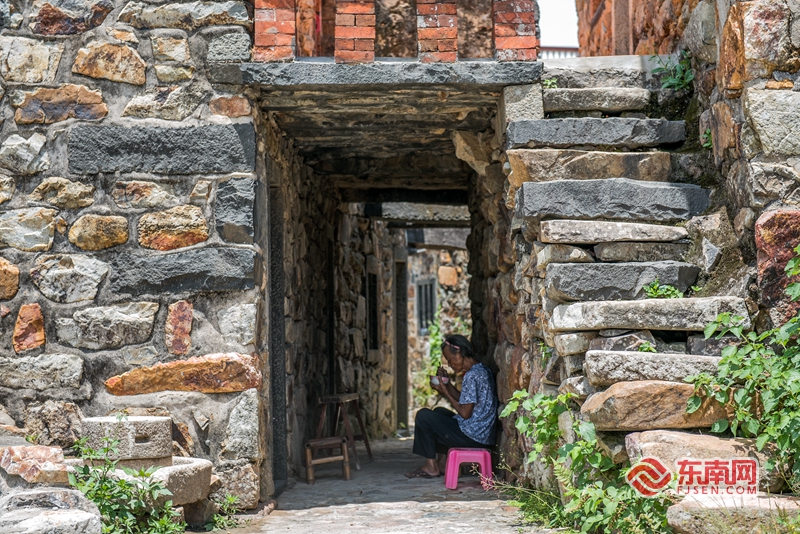 房屋是用大小不一的石头砌成,色彩不一。东南网记者 林婕 摄 东南网8月19日讯(本网记者 林婕)近日,记者采访途中走进了一个如画般的村庄——樟脚村。樟脚村位于泉州市泉港区涂岭镇,全村现存不少石头厝,层层叠叠、错落有致,宛如一座古城堡。