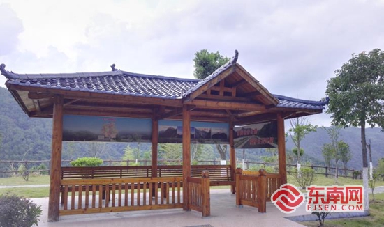 戴云山筑建筑风格的国道355线双交林停车区休息亭。