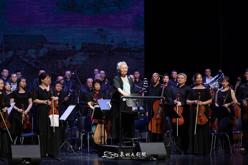 当晚,91岁高龄的中国著名女指挥家郑小瑛携手厦门歌舞剧院交响乐团,并与迪里拜尔、凯丽、康庄、濮存昕、袁晨野、乔榛、玉蕾、张晶等多位著名表演艺术家一起亮相泉州大剧院,吟诵流光溢彩的唐宋诗词文赋。