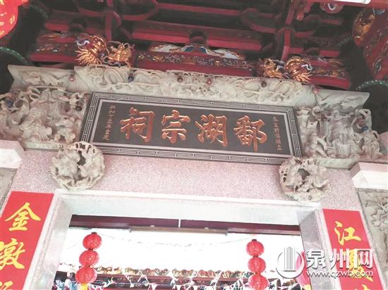 鄱湖宗祠(许月才/摄) 【晋江】 ★鄱湖宗祠 每年春冬二祭 奉祀两姓先祖 泉州市地方志学会顾问许月才介绍,晋江市池店镇潘湖村的鄱湖宗祠也是多姓氏共用祠堂的范例。 晋江各宗族的祠堂大门匾额上,大多开宗明义地标明所属姓氏,可池店镇潘湖村的“鄱湖宗祠”却是个例外。地处潘湖村南面的鄱湖宗祠,是一座典型的闽南式建筑,祠堂的大门匾额,书有“鄱湖宗祠”四字,“鄱湖”乃潘湖古村名,祠堂名是取自地名。 据介绍,鄱湖宗祠的前殿奉祀黄氏先祖,后殿则供奉有欧阳氏先祖的牌位,包括欧阳詹和他儿子欧阳秬。原来,隋时欧阳氏入垦肇基潘湖,到了元末明初,欧阳氏族遭受“乌蜂之变”,欧阳族人迁徙各地。元末时,鄱湖黄氏始祖黄千三因娶欧阳馥英为妻,遂结两姓之亲。后来,由于潘湖没有欧阳氏居住了,黄氏裔孙不忍外祖失祀,而将宗祠分成前后两殿,分别祭祀两姓先祖。 明朝以来,鄱湖黄氏后人每年春冬二祭,包括海内外族亲回乡谒祖时,都要祭拜黄氏本家内祖和欧阳氏外祖,这一习俗延续至今。
