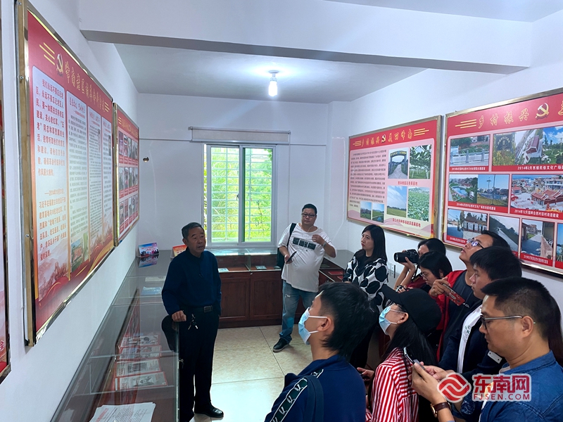 峰南村村史馆,老协会会长何荣泉向采风组一行介绍老区村历史。东南网记者 林杰 摄