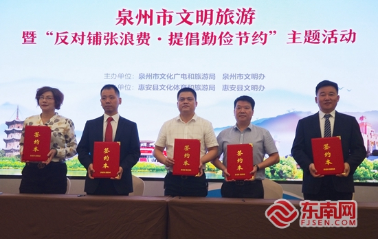 活动现场开展了“文明餐桌”礼仪场景展示。东南网记者 林杰 摄 东南网10月20日讯(本网记者 林杰 实习生 林晶颖 通讯员 柯碧田)为倡导文明旅游观念,践行绿色低碳消费理念,20日上午,泉州市文明旅游暨“反对铺张浪费、提倡勤俭节约”主题活动在惠安聚龙小镇举行。市文旅局、市文明办、各县(市、区)文旅局领导及相关科室负责人,全市三星级及以上星级饭店负责人及餐饮部负责人、3A级以上旅行社代表等参加活动。 启动仪式上,与会人员一起观看了“文明旅游、反对铺张浪费”宣传视频;泉州市文明办领导解读《进一步推动制止餐饮浪费行为的若干措施》;泉州市旅游协会负责人宣读“反对铺张浪费、提倡勤俭节约”倡议书,倡导大家传承中华美德,提倡文明新风,做“厉行节约、反对浪费”的倡导者和践行者,培育崇尚节俭道德的良好文明新风尚。 活动期间,五家骨干旅行社联合签订“文明旅游 健康出行”行业自律协议,缔约各方本着遵循社会效益、经济效益和行业生态效益相统一的原则,共同规范旅游市场行为,净化旅游市场环境,以倡导健康文明的旅游方式,建立健全市场规则,承担社会责任,为旅游者提供安全、健康、卫生、方便的旅游服务,共同营造文明旅游、诚信经营,培育良好的旅游市场环境。 星级饭店代表上台签订践行“制止餐饮浪费行为”承诺书,承诺做倡导的先行企业,坚持诚信守法经营,倡导勤俭科学消费,引导文明理性消费,转变经营服务方式,采取变化菜品设置,改变点餐方式等举措,引导消费者文明用餐,推行光盘行动,有效制止舌尖上的浪费。同时,加强环保卫生保洁,推行“公筷公勺”,提高“文明健康 有你有我”意识,创造干净、整洁、舒适的消费环境。 此外,启动仪式现场还开展了“文明餐桌”礼仪培训及场景模拟展示,向现场人员传播文明礼仪知识。 当天,主办方还组织开展践行“文明旅游 健康出行”集体登山活动及聚龙旅游度假区志愿服务,把整场活动推向高潮。 主办方介绍,该活动的开展旨在大力弘扬中华民族勤俭节约的传统美德,持续提升文旅企业诚信意识和信用水平,引导文明用餐,文明旅游,健康出行,培养文明、健康、绿色、节约的生活方式,着力营造履约践诺、诚实守信、浪费可耻、节约光荣的良好社会氛围,用实际行动为泉州文旅产业高质量发展助力护航。 本次活动由泉州市文化广电和旅游局、泉州市文明办联合主办,惠安县文化体育和旅游局、惠安县文明办承办。 |