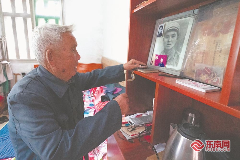 在床边的柜子上,吴清波摆放着自己从军时的照片和在抗美援朝战场上获得的荣誉。