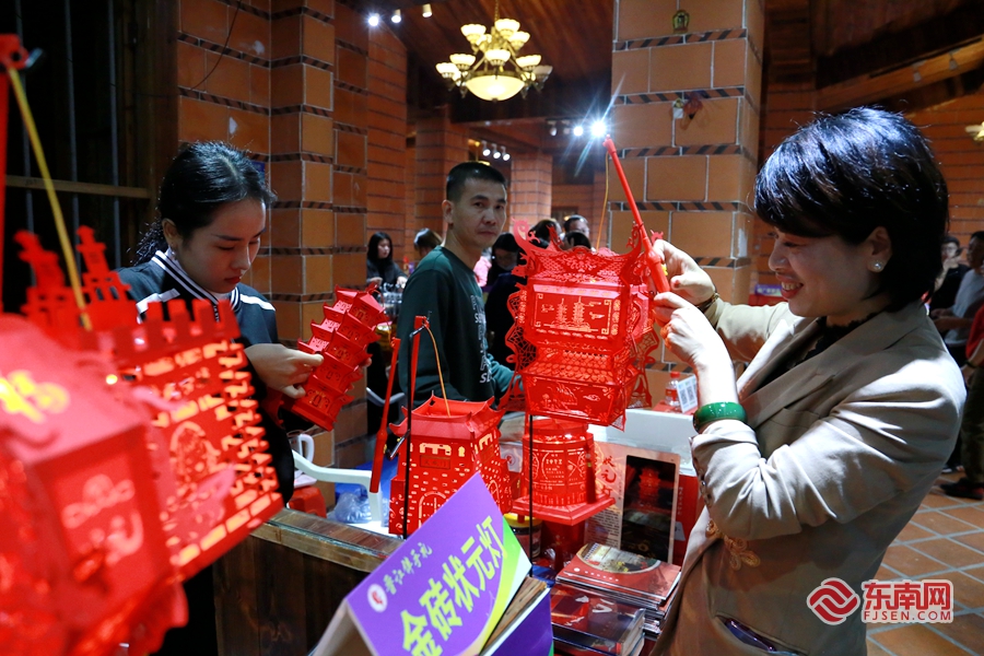 在“文创+旅游”专场方面,采用“线上+线下”活动形式。图为五店市传统街区状元街举办的第三届“晋江有礼”传统文化节上,参展的金砖状元灯。林楷煜 摄 |
