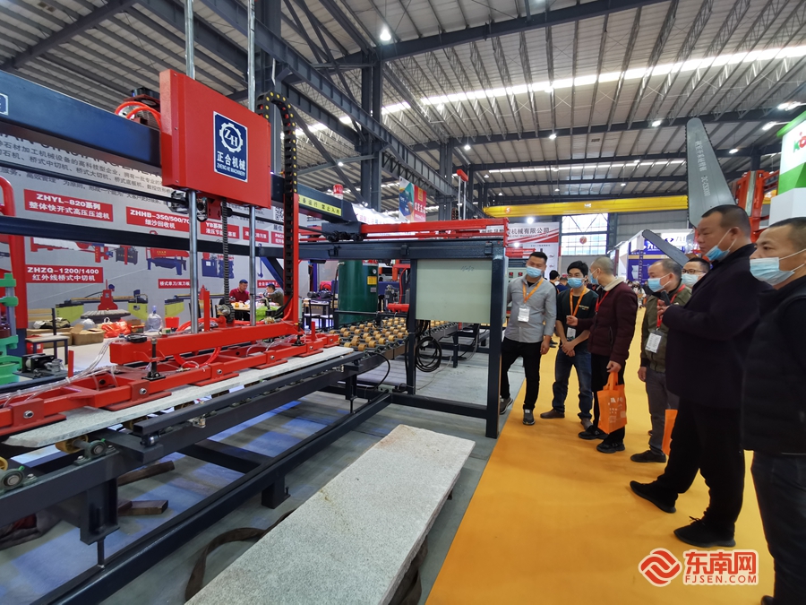 客商们围观石材机械。东南网记者 陈诗婷 摄
