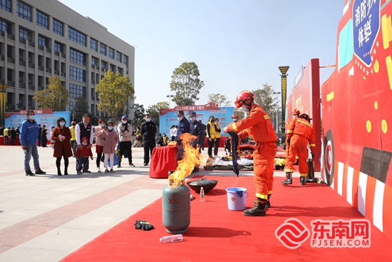 消防展示体验区,消防员正在演示如何灭火。泉州台商投资区公安分局 供图