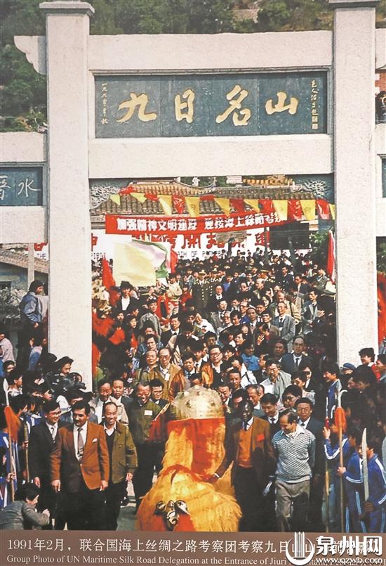九日山祈风石刻展示馆内的收藏 惊艳世界 联合国考察团立碑盛赞 1989年,泉州被列入联合国教科文组织海上丝绸之路考察点,“国保”九日山是重要的考察点之一。彼时,原系南安市高甲剧团民乐演奏员的胡家其,正停薪留职“下海”,是厦门一家外资企业总经理,每月拿着1500元港币的高薪。然而,一纸命令让他回到了南安,“搞好石刻整理、准备迎接联合国考察”。犹豫了三个月,他还是接下了这个月工资仅38.5元,但“对泉州来说非常有世界意义”的任务。 保管员、接待员、卫生员、讲解员、防火员……看着眼前一片荒芜的九日山,那几年胡家其身兼数职,起早摸黑修桥铺路,拆掉鸡圈猪圈,修葺九日山。而最难最重要的还是石刻,为了更好地保护文物,他专程找到泉州海交馆研究员李国清请教,研修各种与九日山有关的书,在专业人员的指导下完成了石刻清洗和描红,“描完一方石刻至少两天,一次得花3个月”。32年来,这样的工程进行了五次。 终于,1991年2月16日,九日山迎来“大考”!当天,来自非洲、美洲、欧洲和亚洲的联合国教科文组织海上丝绸之路考察队员30多人,乘坐阿曼苏丹提供的“和平号”考察船来到这里。 “OK!OK!Very good!”胡家其忘不了,考察队员一见九日山便盛赞不已,并留下目前九日山唯一的一方英文石刻,上面写着:“作为朝圣者,我们既重温这古老的祈祷,也带来了各国人民和平的信息,这也正是联合国教科文组织丝绸之路——对话之路综合研究项目的最终目的。为此,特留下这块象征友谊与对话的石刻。”
