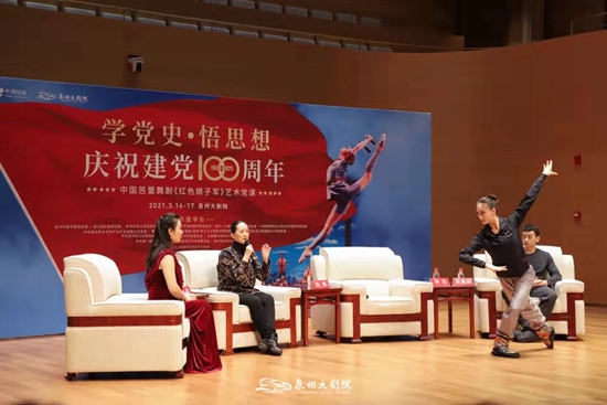 中央芭蕾舞团分享了红色经典党史。泉州大剧院 供图 东南网3月17日讯(本网记者 谢玉妹 通讯员 罗晓野 林奕晗)3月16—17日,中央芭蕾舞团与泉州大剧院组织泉州各机关、企事业单位党支部开展了“学党史·悟思想 庆祝建党100周年中国芭蕾舞剧《红色娘子军》艺术党课”系列主题活动,通过红色题材艺术作品重温党的光辉历史,激发广大党员的爱国主义热情,传承红色经典。 活动中,中央芭蕾舞团长、艺术总监冯英和主演李洁、佘兆环分享了红色经典党史。现场通过党建知识竞答,引导党员们重温党的光辉历史,激励大家继承弘扬党的优良传统和作风。据冯英介绍,《红色娘子军》是上世纪六十年代在周恩来总理直接关怀下创作演出的,是我国芭蕾舞按照周总理指示“革命化、民族化、群众化”进行改革的首次尝试。“《红色娘子军》既是国家和人民的精神文化财富,也是中芭的‘传家宝’。她像一面旗帜,感染、召唤着中芭艺术家们一代代将《红色娘子军》的精神传承、发扬。” 为庆祝中国共产党成立100周年,中国芭蕾舞团舞台艺术精品创作工程“百年百部”传统精品复排计划重点扶持作品——《红色娘子军》将于3月17日晚在泉州大剧院上演。《红色娘子军》的故事发生在二十世纪三十年代的海南岛,以中国革命历史为背景,讲述了从恶霸南霸天府中逃出来的丫鬟琼花,在红军党代表洪常青的帮助下,从一名苦大仇深的农村姑娘,逐渐转变成一名有着坚定的共产主义信念的娘子军战士的历程。 中国芭蕾舞剧《红色娘子军》是东西方文化艺术成功融合的典范,是中国戏剧舞台上革命现代戏的常青树,也是中华芭蕾创作史上的里程碑。以军帽、军鞋、军装打扮的“娘子军们”,通过对古典芭蕾形象的颠覆,将芭蕾的精华与中国的气派融为一体。它不仅在芭蕾舞台上破天荒地塑造了英姿飒爽的“穿足尖鞋”的中国娘子军形象,并通过震撼人心的故事情节,恢弘绚丽的场面以及独特的地域风情,成为民族芭蕾的精品。中国芭蕾舞剧《红色娘子军》充分弘扬党和人民军队的光辉历史,带领党员们再次走进那段悲壮历史,让每位党员干部意识到正是无数革命先烈抛头颅、洒热血,才换来祖国的独立、富强和人民的幸福生活。 此次“学党史·悟思想 庆祝建党100周年中国芭蕾舞剧《红色娘子军》艺术党课”系列主题活动有效激发了党员同志的使命感与责任感,让每位党员深刻意识到继承革命先烈的伟大理想和意志。 据悉,献礼建党百年,泉州大剧院将陆续推出更多红色经典高雅艺术,以上海芭蕾舞团舞剧《闪闪的红星》、中国国家话剧院话剧《三湾,那一夜》、北京京剧院革命现代京剧《沙家浜》、吴琼版大型红色经典黄梅戏等剧目切实引领市民厚植家国情怀,坚定理想信念,重现中国共产党带领中国人民继往开来的历史画卷,让党史教育深入人心,为新的一年吹响时代前进的文艺号角。 |