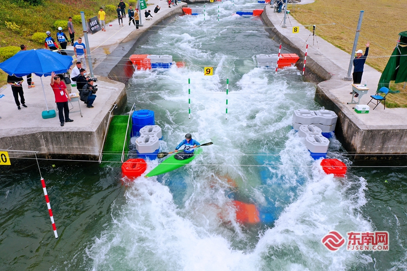 运动健儿劈波斩浪搏激流。林楷煜 摄 东南网3月19日讯(本网记者 陈诗婷 通讯员 陈鑫炜 黄瑜鹏)今日上午,2021年全国皮划艇激流回旋春季冠军赛暨第十四届全国运动会资格赛(第二站),在南安的福建省皮划艇激流回旋基地开赛。本次比赛吸引来自福建、广东、四川等12个省市代表队180名运动员参加,将持续至21日。 位于南安市梅山镇的福建省皮划艇激流回旋训练基地于2017年8月竣工,共设两条赛道。主赛道全长300米,落差4.5米;副赛道220米,落差3.5米,在自然河道进行引水,使用成本较低,障碍物可移动拆卸。主赛道适合成年运动员进行训练比赛,副赛道适合青少年运动员进行训练比赛。 本次比赛共设男子单人划艇、女子单人划艇、男子单人皮艇、女子单人皮艇、男子极限激流、女子极限激流等6个项目,共有228条艇报名参赛。其中,男子极限激流、女子极限激流两个项目是巴黎奥运会新增项目,也是首次出现在全运会资格赛赛场上。 据中国皮划艇协会激流回旋委员会主任王子刚介绍,这是全国运动会资格赛第二站,第一站已在广州结束,并选出了60%全运会选手,这次在南安梅山的比赛,将选出剩余资格选手。 本次赛事由中国皮划艇协会和福建省体育局主办,福建省皮划赛艇运动管理中心、泉州市体育局和南安市人民政府承办,福建省船艇运动协会、南安市文化体育旅游和旅游局、南安市梅山镇人民政府和南安市水上运动协会协办。