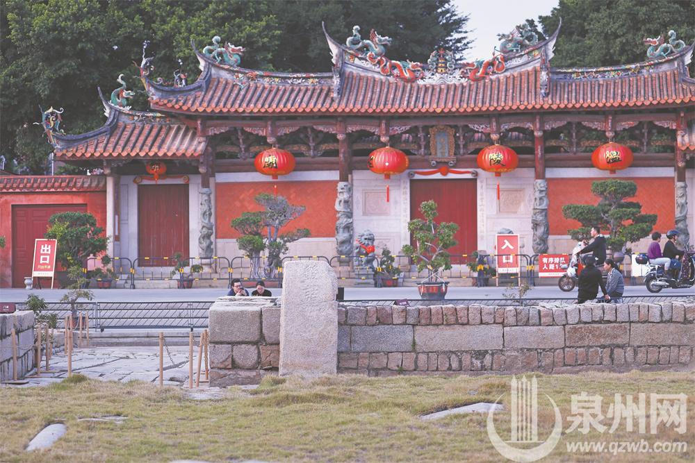 宋代城墙 记者见闻 遗址恢宏大气七座古城门唯一保留者 泉州古城的南端,有处闻名遐迩的德济门遗址。此处是宋元泉州城的南门遗址,也是泉州七座古城门中唯一保留下来,并经科学考古清理出来的城门遗址。 踏上天后路,在天后宫正大门的对面,眼前的德济门遗址呈垒石结构,一块块条石筑砌的古城墙,呈弧状向东西延伸。整座遗址坐北面南,与晋江水遥遥相对,一碑一石在太阳的映照下,更具几分古朴厚重感。 遗址内,有一条深逾2米、宽约2米的壕沟。据一旁的展示牌显示,此乃宋代外城壕,后为元代内壕沟。河沟绿水悠悠,曾流淌数百载。一方明代“盘诘奸细”石碑,见证了泉州军民奋起抵御来犯之敌的烽烟往事。还有外形精美的抱鼓石、古朴的城门盖石以及大量旧建筑构件,让古城门哪怕只是遗址,也依旧显得恢宏大气。 遗址外,由花岗岩砌成的崭新广场,为古迹遗存让出了足够的“保护距离”。夕阳西下,春日暖风轻抚着人们的脸庞,刚放学的孩童在广场上嬉戏;父亲搂着孩子,指着眼前的石碑,讲述700多年前那仿若触手可及的历史;华灯初上,闲坐讲古的老人、弹唱南音的爱好者、跳广场舞的阿姨慢慢聚集。不同年龄、不同职业、不同身份的人在这里感受古迹魅力,乐享现代生活。在街坊们看来,这里就像一座没有围墙、不收门票的“露天博物馆”。 时移世易,昔日迎来送往的古城门,如今已失去了它的防御功能,却成为城市文明的象征。漫步其间,眼前宋、元、明、清各朝修建叠合而成的城门遗迹静默无声,历史的呼吸却随着那孩童的欢笑声,像被吹拂了千百年的风,时时带至耳边。 专家讲述 记录古城向南拓展留住城市“历史标本”