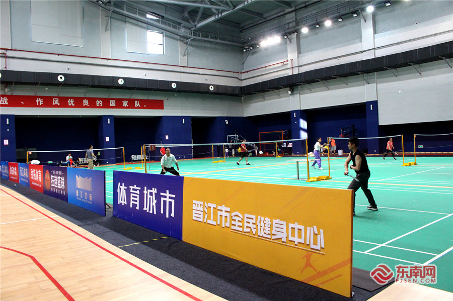 晋江市全民健身中心综合训练馆一层设有2片室内篮球场地,配置国际篮联专业运动地板,减震高达47%,配备CBA联赛同款篮球架,专业室内灯光;同时,还设有6片羽毛球场地,配备国际级专业地垫等器材。 东南网记者 薛逸群 摄