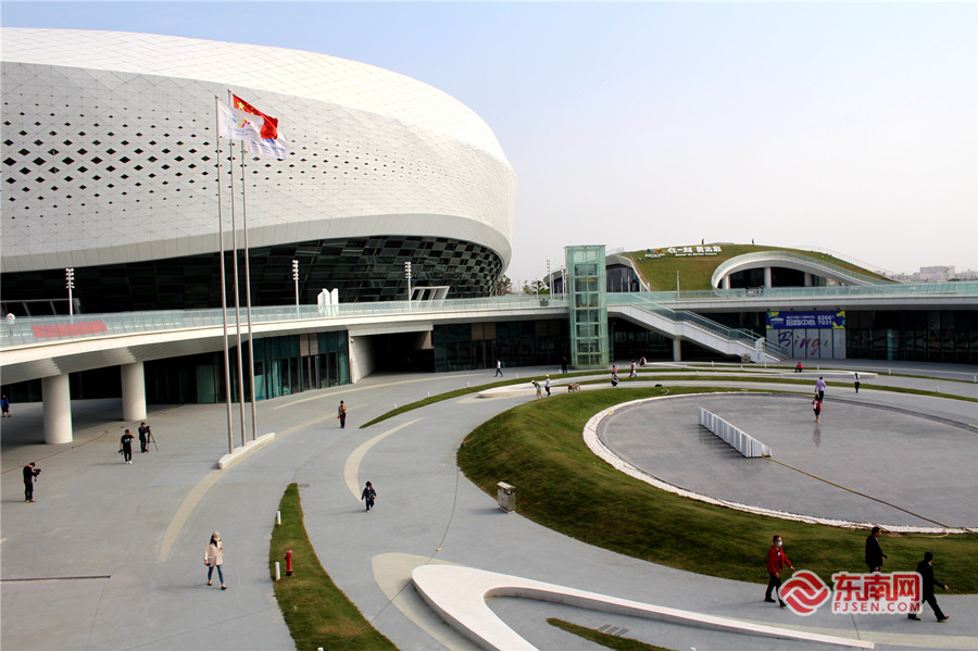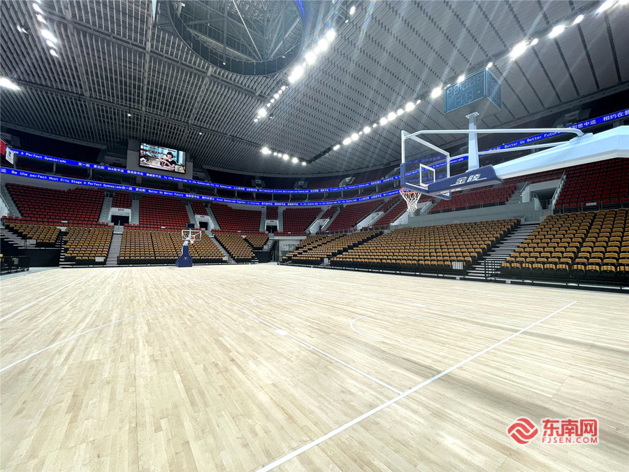 晋江市第二体育中心体育馆作为第18届世界中学生运动会开闭幕式场馆,依照NBA篮球赛事标准设计建设,建筑面积6.4万平方米,设置15203座观众席,赛后将作为全民健身、大型文艺演出场所对外开放使用。 东南网记者 薛逸群 摄