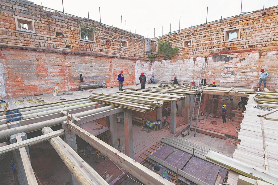 此前,黄素石楼倾颓破败,只剩下石墙和石柱,2019年11月启动保护修缮工程。