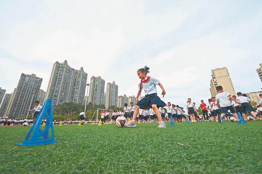 东南网5月14日讯(福建日报 林弘梫 摄影报道)13日,在泉州市泉港区益海实验小学大课间上,孩子们进行足球运球接力活动。 为丰富学生的课余生活,培养学生参与体育活动的兴趣和爱好,今年以来,泉港区各中小学校积极开展特色大课间活动,各校纷纷编排了跑操、街舞、障碍运球、运球接力、韵律操、放松操等各具特色的大课间活动内容,让孩子们享受体育活动带来的快乐。 |