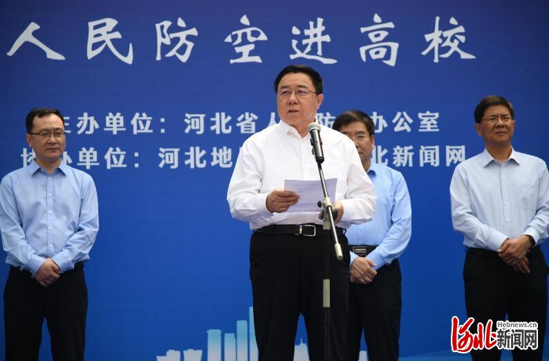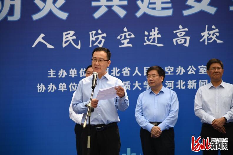 河北新闻网5月12日讯(记者孔思远)今天是第13个全国防灾减灾日,上午10时30分,“防空防灾 共建安全校园——人民防空进高校”活动启动仪式在河北地质大学举行。省人民防空办公室、河北地质大学、河北日报报业集团相关领导出席活动,省人防办有关人员及河北地质大学600余名师生参加活动。 本次活动由省人民防空办公室主办,河北地质大学、河北日报报业集团协办。活动旨在强化防空防灾安全观念、普及国防人防知识、壮大人防志愿者队伍,增强群众自救互救能力。启动仪式现场,省人民防空办公室党组书记、主任郭建英,河北地质大学党委副书记、校长王凤鸣,河北日报报业集团党委委员、副总编辑贾伟分别讲话和致辞。