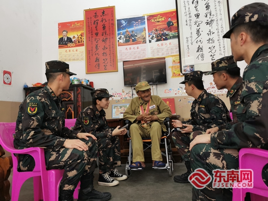 退伍大学生士兵聆听老兵谢荣华讲述战斗往昔。东南网记者 陈诗婷 摄