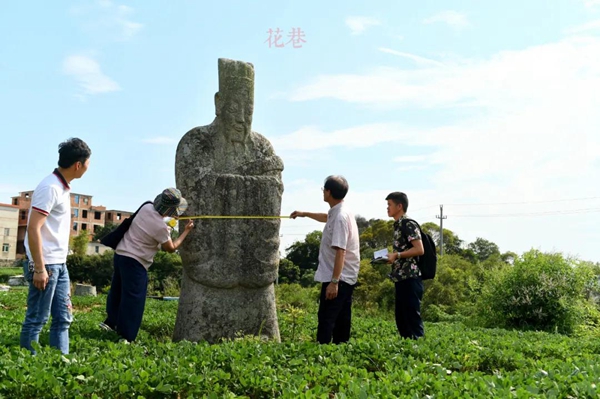 明朝一品相国的墓长啥样? 5月21日傍晚,海都记者跟随原泉州文物管理所所长黄真真、泉州杨氏宗亲会杨茂盛等,前往泉州台商投资区洛阳镇洛安村垄沟路的田间,踏访明代泉州晋江籍一品相国杨景辰墓。 在杨景辰第13代裔孙杨志阳的带领下,记者在一大片地瓜、花生地里,见到了这处相国墓。 记者跟随文史专家,探秘明代一品相国杨景辰之墓 文官石像手持笏板 昭示古墓规格很高 记者看到,整座古墓用料十分讲究,都是上等的花岗岩石材。墓碑高1.75米,宽1.73米,厚30厘米。为了便于识别,不知什么时候,杨氏后人在这块无字碑上描了“芙蓉杨公坟”几个红字。黄真真说,无字碑是明代的特征,个别墓碑上会出现云月图。她猜测,这种级别的古墓,墓道里很可能有墓志铭。 墓的左前方,屹立着一尊高达3米的石翁仲,石翁仲身着文官服饰,手持笏板,昭示着墓主人是名文官。再往前,是一匹没了头颅的石马,卧于田地间,周边散落着几块形状不一的石板。可惜的是,古墓除了大部分石构建遗失、破坏,90%的墓区也早已被开垦成田地,如果不是离墓地不远处一块由泉州台商投资区管理委员会所立的“一般文物点”碑记,一般人很难知道这就是名震一时的明朝重臣杨景辰的墓地,构建至今已历时近400年。 杨志阳告诉记者,早年间族人祭扫相国墓时,曾经发现过盗洞,墓前石雕可能有很大一部分被偷盗。当地一位村民也告诉记者,该墓地曾于上世纪70年代受到过人为破坏。 “墓前完整的石雕排序,应该是对称的石翁仲、马、虎、羊,最后是两根对称的望柱。”虽然墓地仅存一尊完整的石翁仲和一匹残缺的石马,但凭着丰富的经验和考古常识,黄真真快速考古杨景辰墓,为我们还原了墓地的原状。她认为,从石雕就可以看出,墓地的规格非常高,只有将相级别的墓主,方有资格配置。 测量显示,古墓坐东南朝西北,呈凤形,一个平台一个平台地往外延伸。按石雕排序推算,古墓至少有六个平台。在每个平台的递延壁,记者发现了大量较为完整且十分坚固类似水泥的浇筑板。黄真真告诉我们,那是糖水灰,糖水灰构筑坚如磐石,是当时顶级的建筑施工材料。 |