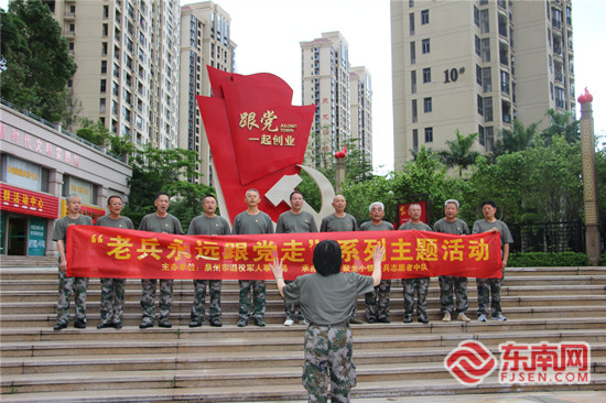 退伍老兵深情演绎红色经典歌曲 东南网记者 陈诗婷 摄 东南网6月29日讯(本网记者 陈诗婷 通讯员 张泓)近日,由泉州市退役军人事务局组织开展的“老兵永远跟党走”系列主题活动走进惠安县聚龙小镇。活动旨在营造退役军人“听党话、跟党走、感党恩”的浓厚氛围,弘扬退役军人“退役不褪色、建功新时代”的社会正能量,助推党史学习教育走深走实。 “通过开展‘老兵永远跟党走'活动,让退役的老兵不忘初心,真正做到退役不退志,即便退休也能为党和人民做贡献。”泉州市退役军人事务局副局长刘红生如是说。 “团结就是力量……这力量是铁,这力量是钢……”在聚龙小镇,十几名身着迷彩服的退伍老兵深情演绎红色经典歌曲,表达对党、对祖国的深情祝福。随后,在泉州市退役军人局有关负责人的带领下,他们面对党旗,重温入党誓词,进一步加强红色记忆。 现场,退伍老兵们组成的“老兵服务中队”,为社区的居民们提供维修电器、理发等便民服务。同时,还有医疗队为老兵们义诊。 当天,泉州市退役军人事务局一行还走访慰问聚龙小镇里的70岁以上退役军人老党员,向他们致以亲切问候和崇高敬意,感谢他们为党的事业和当地经济社会发展作出积极贡献。 为了在党史学习教育中,积极将退役老兵群体纳入教育主体,在教育互动、交流讨论的过程中汲取“中国军人精神”,激发和传承勇敢顽强的战斗精神、无私奉献的大爱情怀、意志坚定的崇高品格,进一步增强广大退役军人的尊崇感和获得感,当天,泉州市退役军人事务局还邀请泉州市委党史教育讲师团成员、市数字办党组成员、华侨大学高等教育研究中心高级研究员吴彧寰,围绕“百年大党正年轻”主题开展党史学习教育主题党课,共同重温中国共产党的光辉历程,坚定共产党员的初心和使命。 在场的退役军人老党员纷纷表示,他们将做好 " 传声筒 "、传好 " 接力棒 ",将红色故事讲给更多的人听,将红色基因烙印在更多人的心灵深处。 |