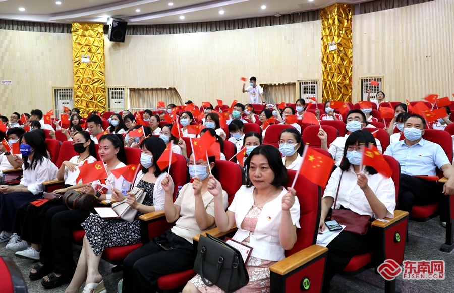 文艺汇演暨表彰大会现场。东南网记者 陈培源 摄 东南网6月30日讯(本网记者 谢玉妹 陈培源 通讯员 庄诗滢 朱婧媛)30日下午,泉州幼儿师范高等专科学校举行“永远跟党走——庆祝中国共产党成立100周年文艺汇演暨表彰大会”。 演出分为《序曲》和《 回望·感念党恩》《传承·立德树人》《展望·永跟党走》三大篇章,通过舞蹈、朗诵、乐器演奏、舞台剧、歌伴舞、茶艺表演等丰富多彩的形式庆祝党的生日、缅怀党的丰功伟绩,让师生们铭记历史,不忘使命,全面推进校园文化建设。 在建党百年的奋斗路上,无数的泉幼人也在努力拼搏。他们当中涌现出一批批优秀党员、优秀党务工作者、先进基层党组织。现场,学校对获评今年“两优一先”的集体和个人进行表彰,同时,为6名老党员颁发“光荣在党50年”纪念章。 获颁纪念章的老党员黎念泉回想入党时的情景,仍历历在目。“1961年12月22日是我终生最难忘的一天,我举起右手在党旗前庄严宣誓,这张用红纸打印的誓词我一直保存在身边,已经快60年了。”黎念泉动情地说,他将永远坚守入党时的初心和使命,做一名永不褪色、名副其实的共产党员。 从“青丝少年”到“银丝长者”,老去的是沧桑岁月,不变的是赤诚初心。当天,新老党员在泉州幼高专党委书记苏白茹的带领下,重温入党誓词,牢记初心使命,凝聚力量建设更加美好的泉州幼高专。