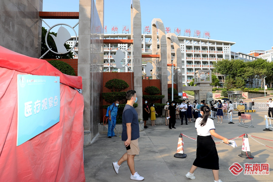 校门口发热病人处置演练。东南网记者 陈培源 摄 东南网8月27日讯(本网记者 陈培源)泉州幼高专学生将于28日开始返校报到。27日下午,泉州幼儿师范高等专科学校在东海校区组织开展秋季新冠肺炎疫情防控应急演练。各学院各科室相关负责人、辅导员和教师等参加演练。 据了解,此次演练内容涵盖校内、校外可能发生的各种突发情况,包括发热病人处置、校内有接触史无症状处置、群体性心因性反应事件应急处置、全员核酸检测等。在演练的过程中,不仅让所有工作人员知悉自己的工作职责,还进一步优化应急预案,达到推演的目的。 “演练终归是演练,只有在日常工作中严格执行防控要求、提高警惕,才能把防控工作做好。”泉州幼高专副校长陈文东在演练总结时强调,各学院各部门要各司其职,密切配合,才能确保校园安全、学生安全。