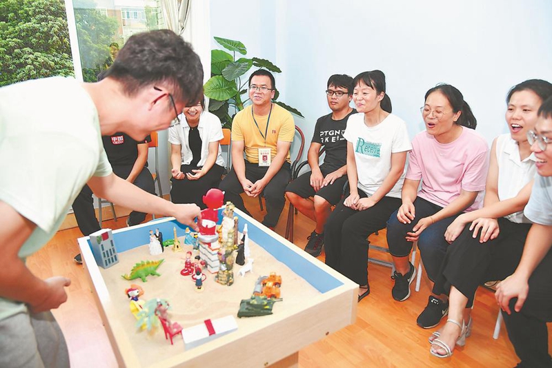 9日下午,一场“心动力·心幸福”的教师团体心理辅导活动在泉州市洛江区实验小学开展。活动通过组织开展“一圈到底”“揪尾巴”等心理游戏,缓解教师心理压力,增强他们的职业幸福感与团队凝聚力。 林升 摄