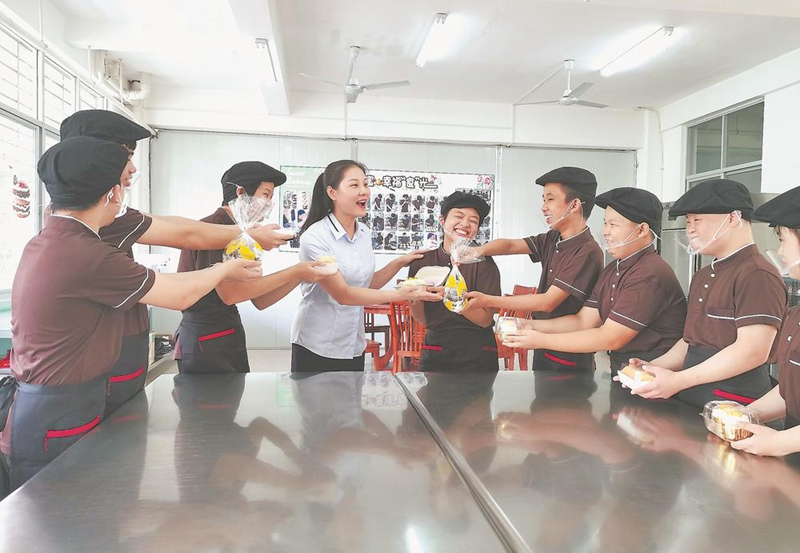 9日,南安市特殊教育学校职高面点班的学生们用学到的烘焙技能,制作了面包、奶油杯子蛋糕,献给他们的老师王莉莉。洪珍华 陈鑫炜 摄 |