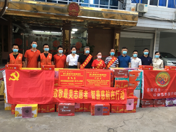 慰问活动现场。丰泽区委文明办 供图 正值新冠肺炎疫情防控的关键时刻,泉州市道德模范充分发挥示范带动作用,勇于担当、主动作为,以实际行动在抗“疫”期间彰显道德模范“好人”力量。9月20日下午,刚刚获得殊荣的第七届泉州市道德模范蔡飞昌、叶原原慰问丰泽区抗疫一线工作人员,向他们送去急需的矿泉水、牛奶、面包、速食品等生活物资。 记者了解到,蔡飞昌向丰泽街道、北峰街道抗疫一线工作人员送去价值10840元的慰问物资。叶原原向东海街道、东湖街道抗疫一线工作人员送去价值26500元的慰问物资。 蔡飞昌是福建昌铭建筑工程技术有限公司总经理、福建省智善慈航公益服务中心理事长。近年来,他带领公益团队累计开展环境保护、文化宣传、助学济困等各种活动。本次疫情爆发以来,蔡飞昌带领团队筹得慰问款项共计242560元。 9月18日,他和团队募集善款购买价值198320元急需生活物资,慰问洛江、惠安、泉港24小时坚守在抗疫一线的工作人员。9月19日,他和团队还精心准备了880份价值33400元的中秋小礼盒慰问惠安五处健康监测点。