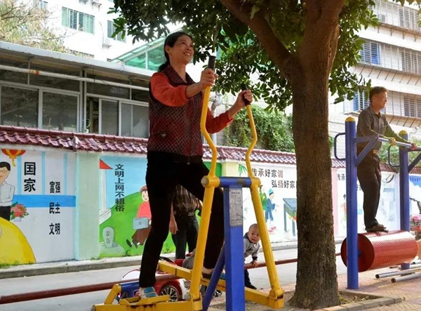 为更好地做好全民健身项目,社区全面检修健身器材,添置和修复破损器材,并规划用地,将部分分散器材合理安放,组建全民健身圈,增进居民健身意识,丰富居民业余生活。