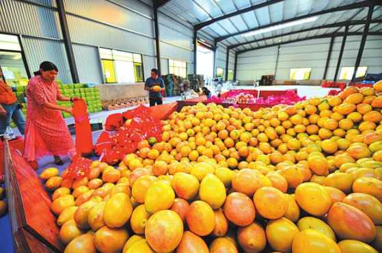 经过机器清洁分拣的柚子,大小均匀,颜值高。 在官桥镇曙光村的山头,800亩三红蜜柚进入成熟期,沉甸甸的柚子被水果套袋包得严严实实的,掩藏在绿叶之间。“今年蜜柚的产量可达15万公斤,目前已销售过半。”泉州立雅果林有限公司负责人童俊杰表示,接下来,他将前往北方部分省份洽谈销售事宜。 曙光村拥有大片的山地,被开垦得整齐有序的蜜柚园就在村道旁,一棵棵果树沿着山坡层层叠立。工人们穿梭在果树间,轻轻一扯,成熟的柚子就被采摘下来,摘掉套袋,或金黄或橙红的柚子露出了脸。 采摘后的柚子最后被运到了今年新建的加工厂,交给一个“大家伙”——清洗分拣机处理。只见机器前端将一个个柚子“吞”进去,自动清洗后,又一个个“吐”出来,排队向前,擦身烘干。柚子继续往前传送,每个柚子“乘”上斗车模样的秤,根据不同重量被分配到不同区域。 “这是我们今年刚引进的自动化清洗分拣机,节省了大量人力物力。”童俊杰告诉记者,一车1500公斤的柚子,只需要10多分钟,就能完成清洗分拣,十分快捷便利。“经过分拣,品质较好的柚子可以精装,走礼品路线。” 刚刚包装好的蜜柚,很快就有了去路,几个采购商就在一旁等着。陈永洲就是其中之一,“这是我第三年来这里采购三红蜜柚了,第一批订了1500公斤,第二批打算订2500公斤。”陈永洲也是南安人,早年是从漳州订购柚子,“后来试吃了这里的柚子,发现口感非常不错,品质更好。第一年试水卖了500公斤,顾客反响很好,从此就改订这里的柚子了”。 与陈永洲同行的还有郑水波、郭银河、陈瑞芬等人,“三年了,我们每年都会亲自来果园,看一看、尝一尝,品质有保障就立马下单。”郑水波表示,他们每人都有几千斤的订单。 童俊杰告诉记者,这800亩三红蜜柚果园是整个泉州市规模最大的果园,种有1.3万株果树,全部都是从漳州平和引进的,今年是种植的第六个年头,仍处于成长期。“今年产量预计有15万公斤,目前已销售约8万公斤。果树预计于四年后进入丰果期,产量将翻倍。” 立雅果林的柚子为何更受市场青睐?南安市农科所副所长陈汝顶给出了答案。现场,陈汝顶取出一颗柚子果肉,挤出果汁,倒在他带来的甜度计中,机器给出了11.3的数值。“柚子是一种偏清甜的水果,甜度在9至13间。11.3的甜度已经是较甜的,再加上,这里的柚子水分足。”陈汝顶说。 陈汝顶表示,立雅果林在市农科所的指导下,先后组织实施了丘陵山地三红柚生态栽培技术研究、果园绿色防控技术示范、果园增施有机肥提高土壤质量等推广项目,在土壤施肥、饮水灌溉、除虫除草等方面都十分规范,慢慢摸索出漳州蜜柚与官桥土壤“联姻”的最佳模式。2019年,立雅果林的三红柚获得中国绿色食品发展中心认证的绿色食品A级产品,许可使用绿色食品标志,这是泉州市水果类别的第一张绿色食品证书。 如今,立雅果林的三红蜜柚招牌越来越响,不少采购商慕名前来,但童俊杰并没有满足于此,他正积极与北方采购商洽谈,“我们要让更多人吃上我们的蜜柚”。(海丝商报记者 苏明明 李想文/图) |
