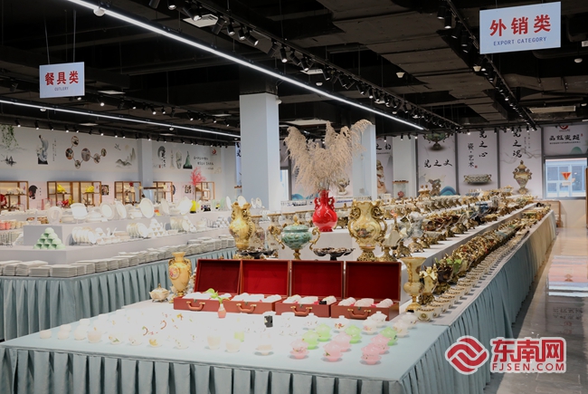 琳琅满目的陶瓷产品。 东南网记者 陈培源 摄 立体化打造陶瓷商业中心 瓷艺城是德化县陶瓷产业提档升级的重点工程项目。该项目总投资约4.5亿元,占地面积42亩,其中瓷艺商城、瓷艺街以及地下室建筑面积总计6.4万平方米,立足于世界陶瓷之都·德化的陶瓷产业和超千亿陶瓷品牌价值,按国家4A级陶瓷文化旅游景区规格建设,配套建设陶瓷博物馆、陶瓷博览中心、旅游集散服务中心、陶瓷文化体验中心等。 “该项目以陶瓷营销展示为主题,以表现德化陶瓷艺术魅力为主要特征,是德化县全力打造的陶瓷文化创意产业基地。”德化国际陶瓷艺术城运营管理有限公司董事长陈茂林介绍,形成集世界陶瓷交易、会议展览、陶瓷研发设计、旅游购物、陶瓷文化体验等为一体的陶瓷主题文化商业中心。 陈茂林介绍,瓷艺城将通过文创赋能、科技赋能、文旅赋能、教育赋能、推广赋能等五大板块运营,统筹规划高端展会、博览会、论坛、文创大赛等一系列活动,进一步炒热德化陶瓷,提升陶瓷产品附加值,推动陶瓷产业转型升级。