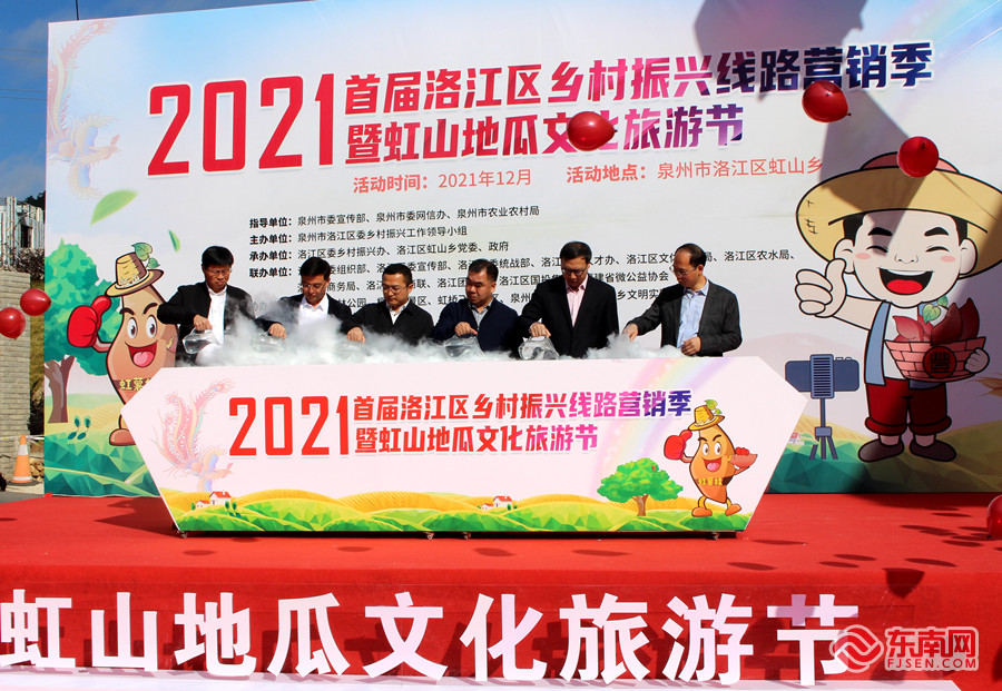 启动仪式。 东南网记者 薛逸群 摄 东南网12月12日讯(本网记者 薛逸群 )12月11日,2021泉州市洛江区首届乡村振兴线路营销季暨虹山地瓜文化旅游节在泉州市洛江区虹山乡揭开序幕。 活动现场,主承办方组织开展虹薯有约乡间趣味运动会、地瓜田越野卡丁车体验、虹薯联盟亲子主题游戏、三大景区梦幻联动优惠游、虹薯公益徒步等一系列配套活动,为市民游客奉上一场精彩的文旅盛宴。 “洛江区根据泉州市委乡村振兴办示范线路创建要求,持续打造4条市级示范线路,今年来进一步整合优化‘悠山悠水 畅游虹山线’,积极参与市级乡村振兴示范线‘拉练比拼’活动,获评泉州市级第一批乡村振兴精品示范线。”虹山乡有关负责人表示,虹山乡作为洛江区整镇推进试点乡镇,举办本次活动旨在贯彻落实泉州市党代会报告提出的“整镇推进乡村振兴”的部署要求,以建设“梧凤小镇、彩虹之乡”为主题,不断推进虹山乡全域旅游,壮大村集体经济,推进虹山乡全面振兴。 值得一提的是,泉州市洛江区乡村振兴研究院和梧凤文旅集团揭牌仪式也于当日举行。 “泉州市洛江区乡村振兴研究院是以洛江区政府和中国社会科学院、清华大学、北京大学、华侨大学、泉州师范学院为主体,聚焦‘科技赋能+文化赋能+商业模式赋能’,整合省内外专家资源,组建的乡村振兴专家高端智库。”洛江区乡村振兴研究院院长孙锐介绍说,研究院成立后将紧紧围绕洛江区乡村产业升级、全域旅游与人才培养,开展创新规划、研究与社会服务,搭建产政学研相结合的乡村振兴服务平台、推广平台及多样化学习平台,力争成为洛江区乡村振兴的展示窗口、有力引擎和人才高地。 洛江区乡村振兴办有关负责人指出,组建梧凤文旅集团是贯彻上级关于“创新先富带后富帮后富机制,整镇推进乡村振兴”要求,促进农民创收、村财增收、农业增效,实现乡村振兴与共同富裕有效衔接的积极探索。希望虹山乡以此为契机,大力发挥国有公司作为乡村振兴开发主体的主导作用,提升整乡推进乡村振兴实效,为全区乡村振兴提供鲜活模板。 据悉,为聚焦富民产业发展好、乡村建设提升好、乡村文化传承好、治理能力建设好、党建统领发挥好等五大任务,构建“乡镇引领、以乡带村、连村成线、村兴民富”的乡村振兴新格局,本次活动还举行了万企兴万村、招商引资、战略合作等一批签约仪式。其中,泉岩茶叶、美标优信、燕煌医药、嘉华卫生用品等洛江本土企业分别与虹山、马甲、罗溪3个乡镇4个村签订合作协议,充分展示洛江民营企业家“义利兼顾、以义为先”的光彩理念,用看得见、摸得着、感受得到的丰硕成果回报家乡、造福桑梓。同时,在本次活动前,还有多个虹山乡贤为家乡发展出谋出力、返乡投资,共签约4个项目,涉及民宿、种植、养生、文化等领域,助力乡村振兴。 本次活动由泉州市委宣传部、泉州市委网信办、泉州市农业农村局指导,洛江区委乡村振兴工作领导小组主办。